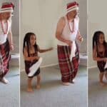 A video shows a little girl teaching her oyinbo father how to shake his waist and dance like an Igbo man.